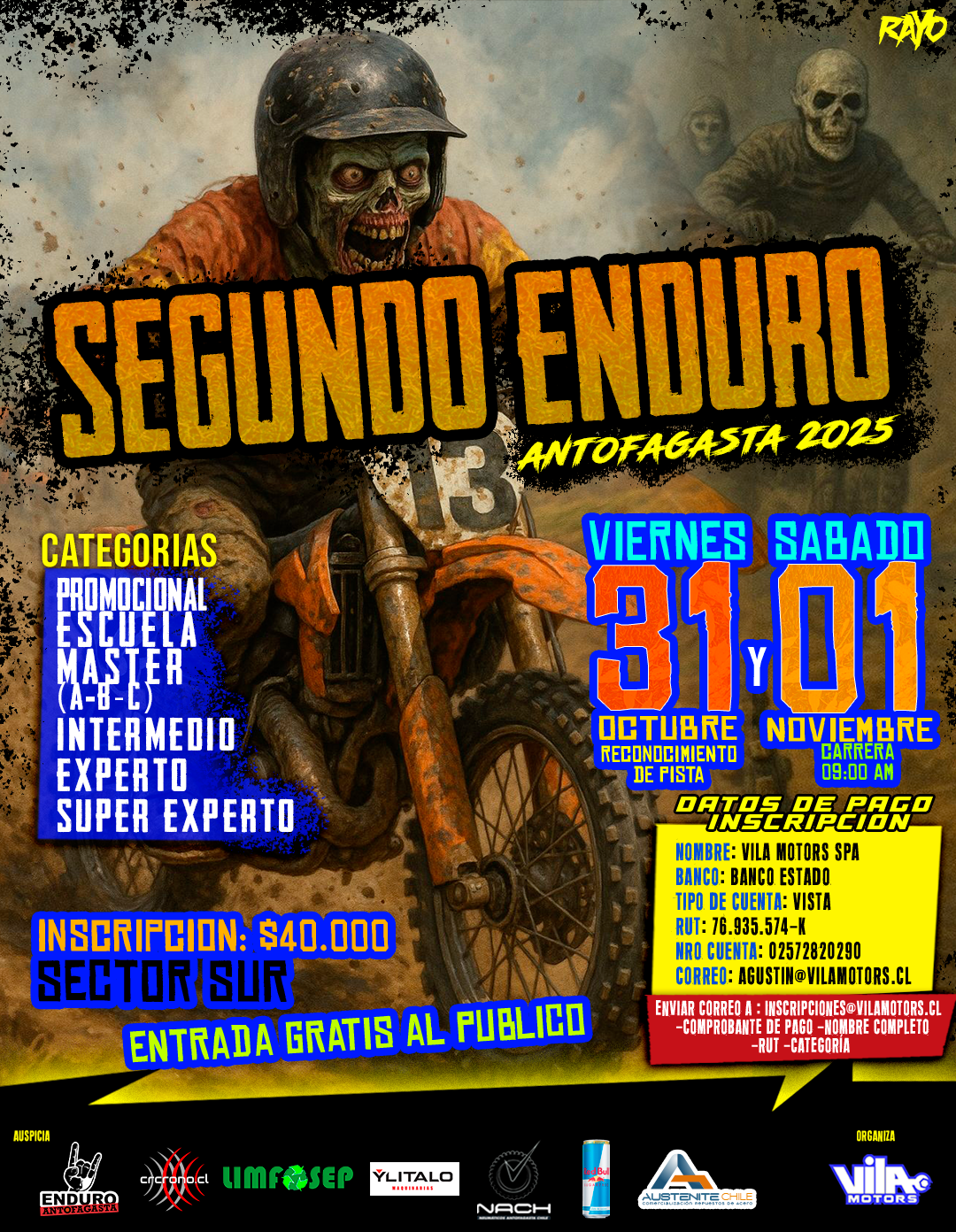 crcrono.cl CRONOMETRAJE DEPORTIVO CONTACTO QUIÉNES SOMOS TIEMPOS EN VIVO ENTRAR PRÓXIMOS EVENTOS SERVICIO DE CRONOMETRAJE ENDURO DE LAS ALTURAS 06 – 07 DICIEMBRE 2025 – SAN PEDRO DE ATACAMA Inscripción Bases Coordenadas PUNI ROCK - PUNITAQUI 25 – 26 OCTUBRE 2025 – PUNITAQUI Inscripción Bases Coordenadas SEGUNDO ENDURO 2025 31- 01 OCT/NOV 2025 – ANTOFAGASTA Inscripción Bases Coordenadas ANTENAZO 2025 - RUKKOS 23-24 AGOSTO 2025 – CHILLEPIN Inscripción Bases Coordenadas SEGUNDO ENDURO 2025 31- 01 OCT/NOV 2025 – ANTOFAGASTA Inscripción Bases Coordenadas 8VA ZONAL NORTE ENDURO 11 – 12 OCTUBRE 2025 – OVALLE Inscripción Bases Coordenadas RESULTADOS CAMPEONATOS ZONAL NORTE RESULTADOS RANKING ENDURO ANTOFAGASTA RESULTADOS RANKING ENDURO TRI SERIES RESULTADOS RANKING RANKING TEAM COPA DE PUEBLOS 2023 RESULTADOS RANKING RANKING TEAM SUMMER SUNSET RESULTADOS RANKING REGLAMENTO 2025 JEEP FUN RACE RESULTADOS RANKING EVENTOS CRONOMETRADOS DH NEW BIKE - PUNI ROCK RESULTADOS 26 OCTUBRE 2025 RESULTADOS SEGUNDO ENDURO ANTOFAGASTA RESULTADOS 01 NOVIEMBRE 2025 RESULTADOS ANTENAZO 2025 RESULTADOS 24 AGOSTO 2025 RESULTADOS TODOS SOMOS VIÑA - LOS MASAI RESULTADOS 25 MAYO 2025 RESULTADOS PR1MER ENDURO ANTOFAGASTA RESULTADOS 16 AGOSTO 2025 RESULTADOS ANTENAZO 2025 RESULTADOS 24 AGOSTO 2025 RESULTADOS DH BRAMIDOS BIKE 2025 RESULTADOS DH 26 ENERO 2025 RESULTADOS DH CANELA BREAKING BIKE RESULTADOS DH 15 DICEIMBRE 2024 RESULTADOS ANTENAZO 2.0 RESULTADOS 7 JULIO 2024 RESULTADOS DH EL CARTEL 2023 RESULTADOS DH 16 DIC 2023 RESULTADOS GENERAL DH CHAÑARAL ALTO RESULTADOS DH 12 MAYO 2024 RESULTADOS RAID ATACAMA RESULTADOS 30 MAYO 2024 RESULTADOS RALLY XCM VALLE COGOTI Resultados 10 SEPTIEMBRE 2023 RESULTADOS BIGTRAIL - XTREMEPARK Resultados 27 AGOSTO 2023 RESULTADOS WHEELWORK - 1RA FECHA RESULTADOS 20 MAYO 2023 RESULTADOS SAN PEDRO DE ATACAMA RESULTADOS DH 28 ENERO 2023 RESULTADOS DH BRAMIDOS BIKE RESULTADOS DH 15 ENERO 2023 RESULTADOS MX CERRO ROJO RESULTADOS 11 DICIEMBRE 2022 RESULTADOS XCM - TXC.BIKE Resultados TXC.BIKE 04 DICIEMBRE 2022 RESULTADOS DOWNHILL - KILTROS BIKE Resultados Downhill 06 NOVIEMBRE 2022 RESULTADOS DH TOROBIKE RACE RESULTADOS 25 SEPTIEMBRE 2022 RESULTADOS RALLY LLANOS DE COGOTI RESULTADOS XCM 11 SEPTIEMBRE 2022 RESULTADOS ENDURO ORIGEN RESULTADOS 25 – 26 JUNIO 2022 DIA 1 DIA 2 ENDURO CHILLEPIN Resultados ENDURO 29 MAYO 2022 RESULTADOS Fecha DOWHHILL CANELA Resultados Downhill 14 agosto 2022 RESULTADOS DESAFIO CHECHO MTB 2022 Resultados XCM – 30 ENERO 2022 RESULTADOS ULTRA TRAIL CRUZ DEL SUR RESULTADOS UTCS – 22 ENERO 2022 RESULTADOS GENERAL 7CAP RACING RESULTADOS 7CAP – 31 OCTUBRE 2021 1RA FECHA RANKING RANCHO IRIARTE RESULTADOS DH 26 SEPTIEMBRE 2021 MANGA 1 MANGA 2 KILTROS BIKE RESULTADOS DH 26 SEPTIEMBRE 2021 RESULTADOS HUELLAS ANCESTRALES Resultados XCM – 10 octubre 2021 RESULTADOS